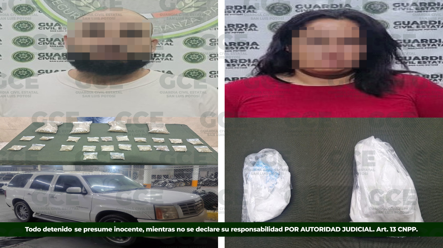 En la capital potosina, la GCE detuvo a Fernando “N” de 29 años y a Ricardo “N” de 26 años, luego de asegurarles 21 bolsas con marihuana, detectados como principales distribuidores de sustancias nocivas en el sector sur de la zona metropolitana. Ambos cuentan con antecedentes criminales por presuntos delitos contra la salud.