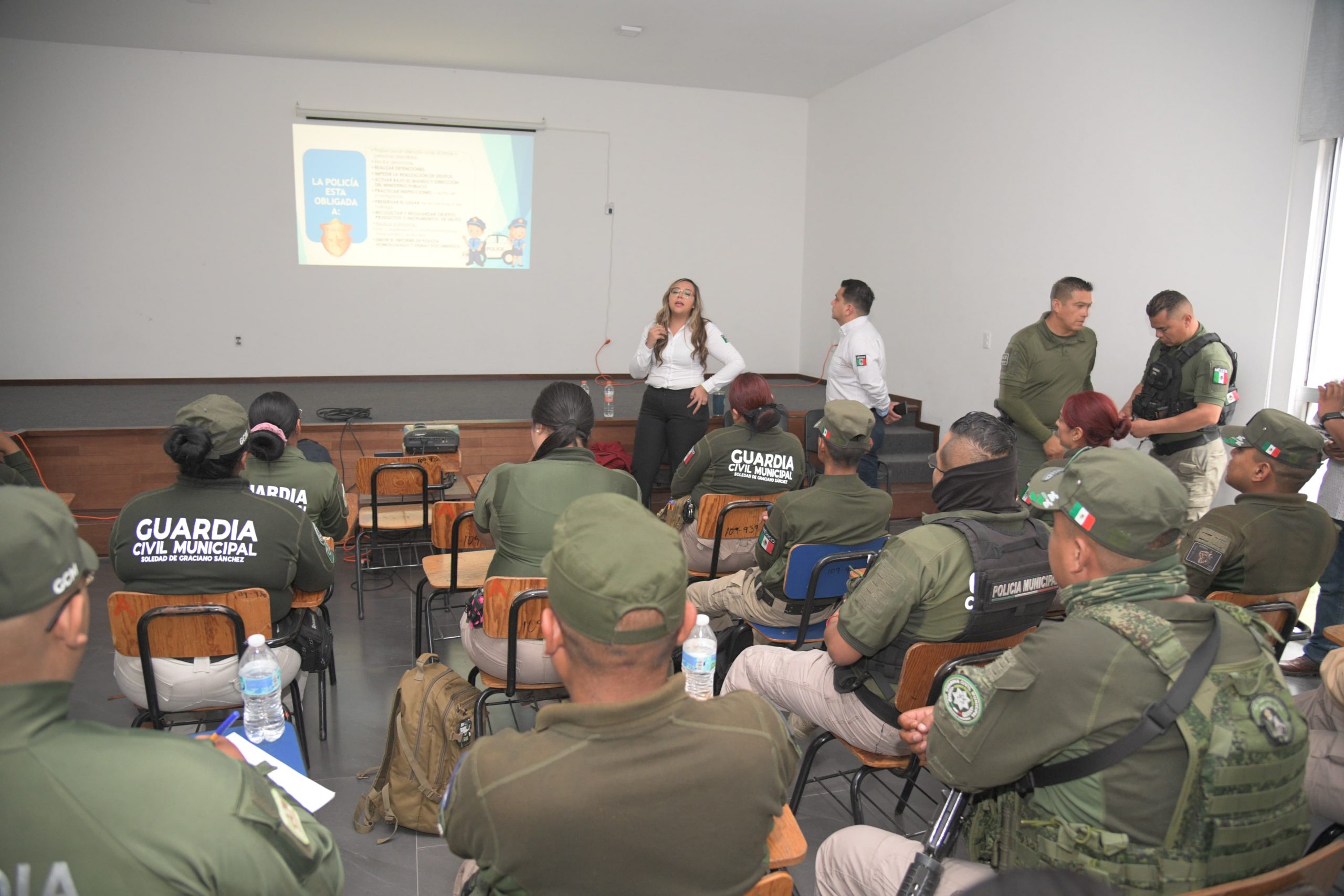 Con el objetivo de formar y capacitar a mejores agentes policiales, acatando las indicaciones del Alcalde de Soledad de Graciano Sánchez, Juan Manuel Navarro Muñiz, la Guardia Civil Municipal llevó a cabo un curso de capacitación enfocado a los protocolos de actuación impartido por personal de la Fiscalía General del Estado de San Luis Potosí (FGESLP), específicamente de la Mesa de Combate al Narcomenudeo, cuyo tema se centró en la detención de personas relacionadas a la comisión de dichos ilícitos.