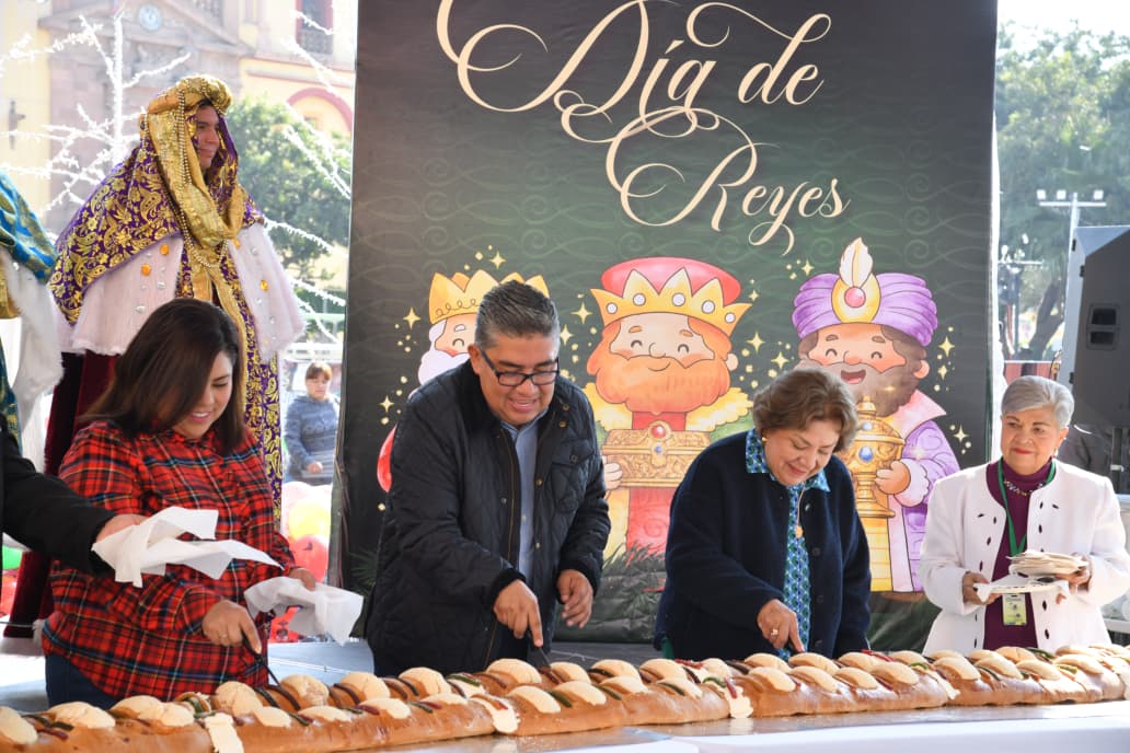 Rodeado de cientos de familias y con un mensaje de prosperidad, abundancia y un compromiso por el desarrollo del municipio, el Alcalde, Juan Manuel Navarro Muñiz partió y compartió la tradicional Rosca de Reyes en la Plaza principal, donde niños, jóvenes y adultos saborearon de este pan y chocolate caliente, creando un momento especial que refuerza la celebración navideña con cercanía y alegría.