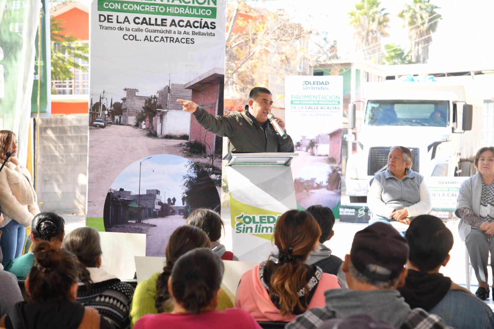 El Alcalde de Soledad de Graciano Sánchez, Juan Manuel Navarro Muñiz, dio el banderazo de arranque al proyecto de transformación urbana de la colonia Alcatraces, con la pavimentación de varias calles, entre ellas, Acacias, que actualmente es de tierra, piedras y su estado es irregular para el tránsito de personas y automóviles; el arranque de rehabilitación comprende de la calle Guamúchil a la avenida Bellavista, otras vialidades de privadas y la construcción de un área común para beneficio de toda la comunidad.