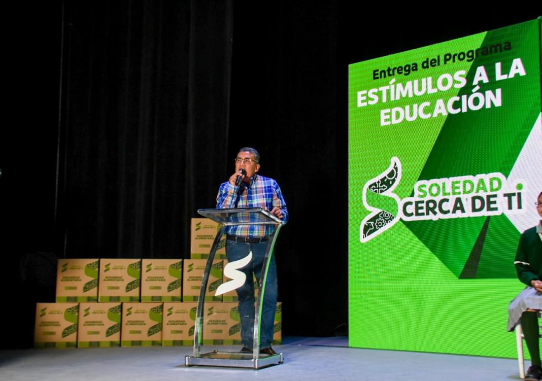 Para motivar y reconocer el esfuerzo académico de cientos de niñas y niños de nivel básico, el Alcalde de Soledad de Graciano Sánchez, Juan Manuel Navarro Muñiz realizó la segunda entrega del programa “Estímulos a la Educación”, dirigido a estudiantes con promedio mínimo de 8.5, y con el que las y los beneficiarios reciben un apoyo bimestral de mil 500 pesos en efectivo, así como una despensa, que reafirman el compromiso del Gobierno Municipal con la formación de la niñez soledense.