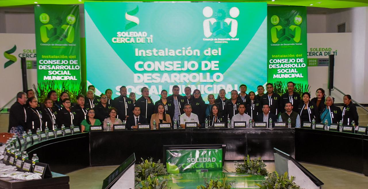 En un hecho que reafirma un gobierno para todas y todos, en el que la participación ciudadana es clave en la implementación de políticas inclusivas y de beneficio directo, este día, el Alcalde de Soledad de Graciano Sánchez -acompañado de autoridades estatales, consejeros y consejeras-, instaló el Consejo de Desarrollo Social Municipal, para impulsar, vigilar y promocionar proyectos para la igualdad y el bienestar social de las y los habitantes de todas las colonias y demarcaciones rurales.