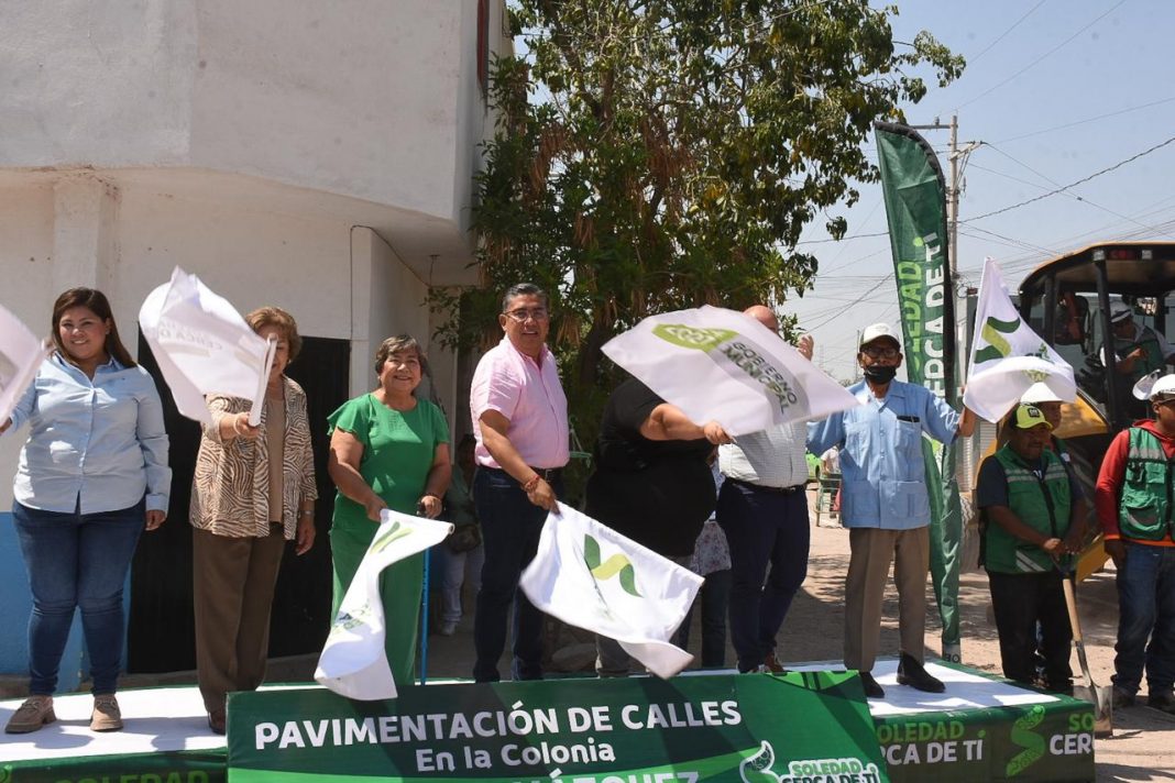 Rodeado de una comunidad entusiasta y agradecida, de vecinos y vecinas de la colonia Genaro Vázquez, por “voltear a verlos y hacer realidad la transformación de sus calles”, el Presidente municipal de Soledad de Graciano Sánchez, Juan Manuel Navarro Muñiz dio el banderazo de arranque de pavimentación de cinco calles de este sector, obras que significan la inversión municipal de 19 millones 81 mil pesos, que incluirá servicios integrales además de la intervención con concreto hidráulico.