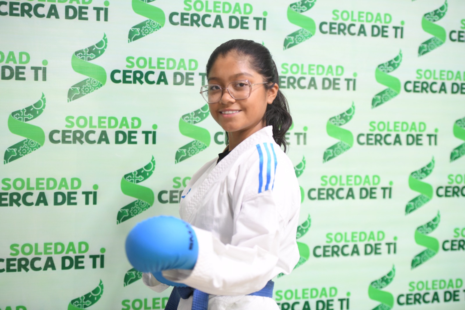 – La pequeña de 12 años de edad recibió un apoyo económico que cubre los gastos de hospedaje y traslado de la pequeña karateca, quien competirá en Asunción, Paraguay; impulsándose el talento deportivo juvenil soledense.
