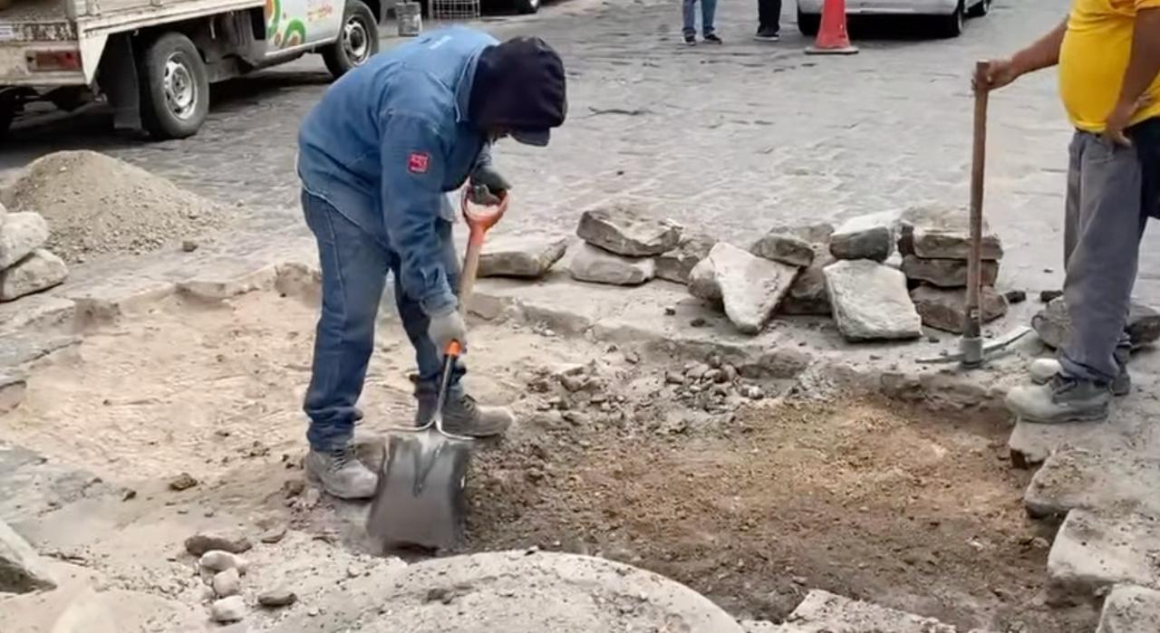 Los trabajos iniciaron este miércoles y consisten en la reposición de 40 piezas de adoquín, así como en el emboquillado con mezcla de cemento para estabilizar la superficie y asegurar su durabilidad. Debido a estas labores, fue necesario bloquear temporalmente la circulación vehicular en la zona.