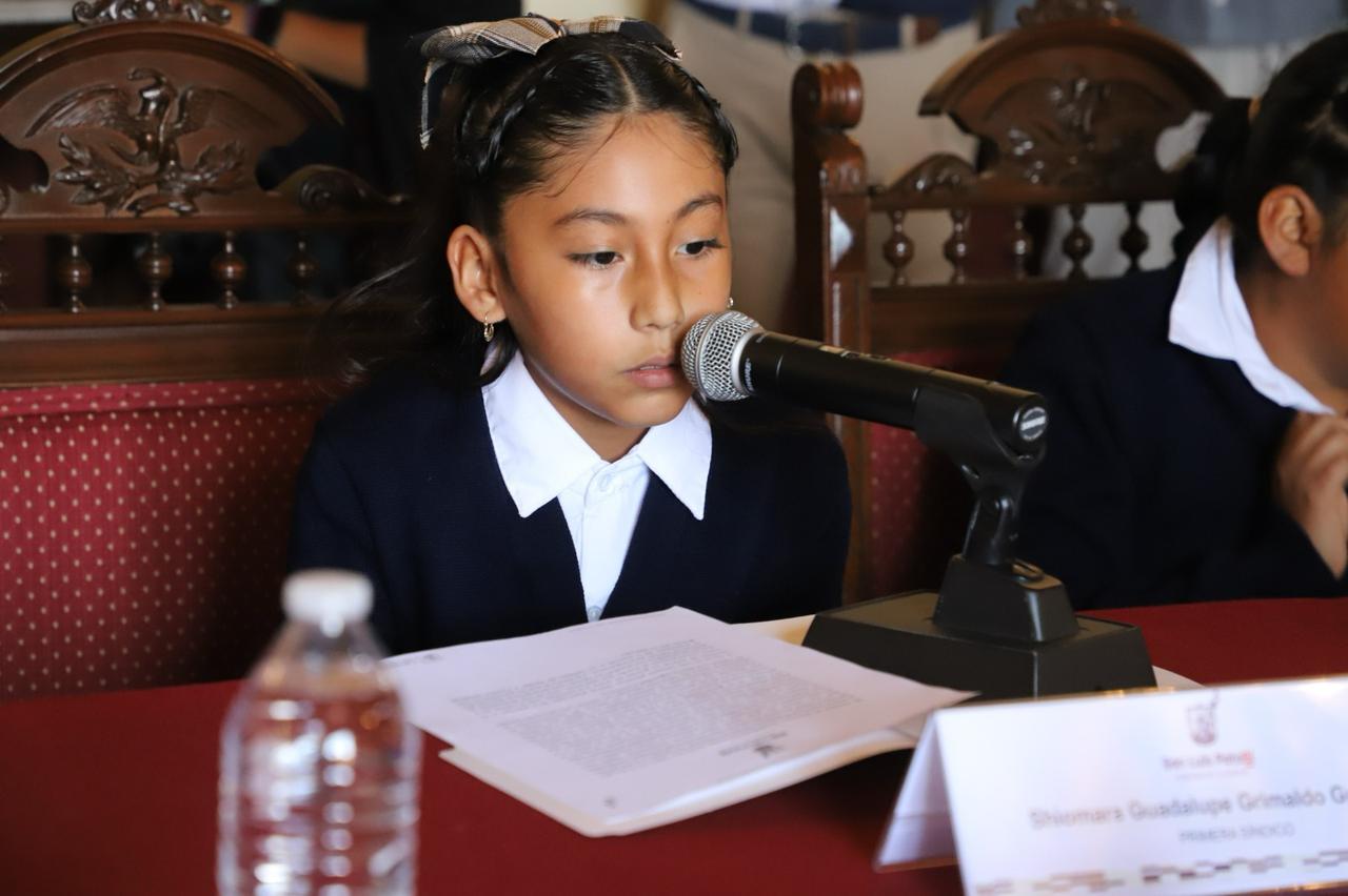 El Cabildo Infantil 2025 quedó integrado por: Ana Paula Álvarez Huerta, Presidenta Municipal, del Colegio Juan de Dios Peza “Sagrado Corazón”; mientras que como secretario general fue designado Néstor Abdiel Hernández Reyes, de la Escuela Antonio Díaz Soto y Gama.