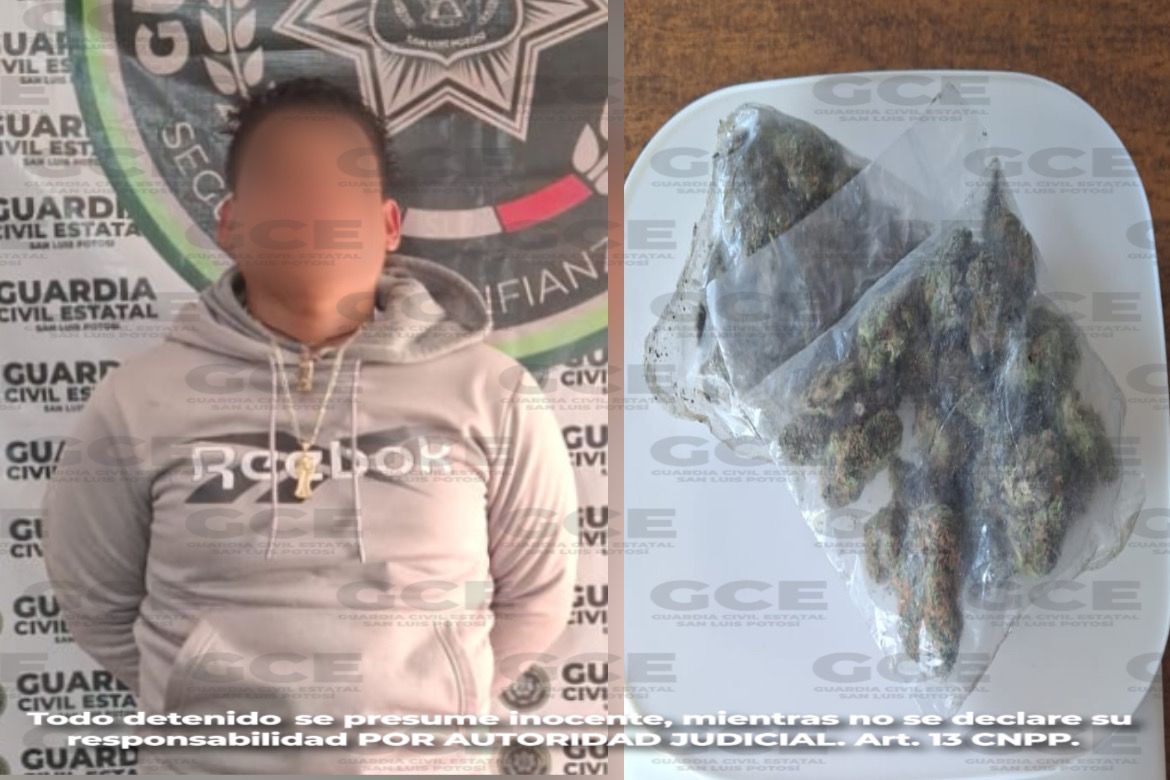 El presunto, con antecedentes por delitos contra la salud y portación de “poncha llantas” es vinculado como encargado de la radiocomunicación de los informantes para delincuentes y enlace en el “halconeo digital” por medio de sistemas de videovigilancia en la región altiplano; se le aseguraron 02 bolsas con marihuana con peso de 16 gramos.