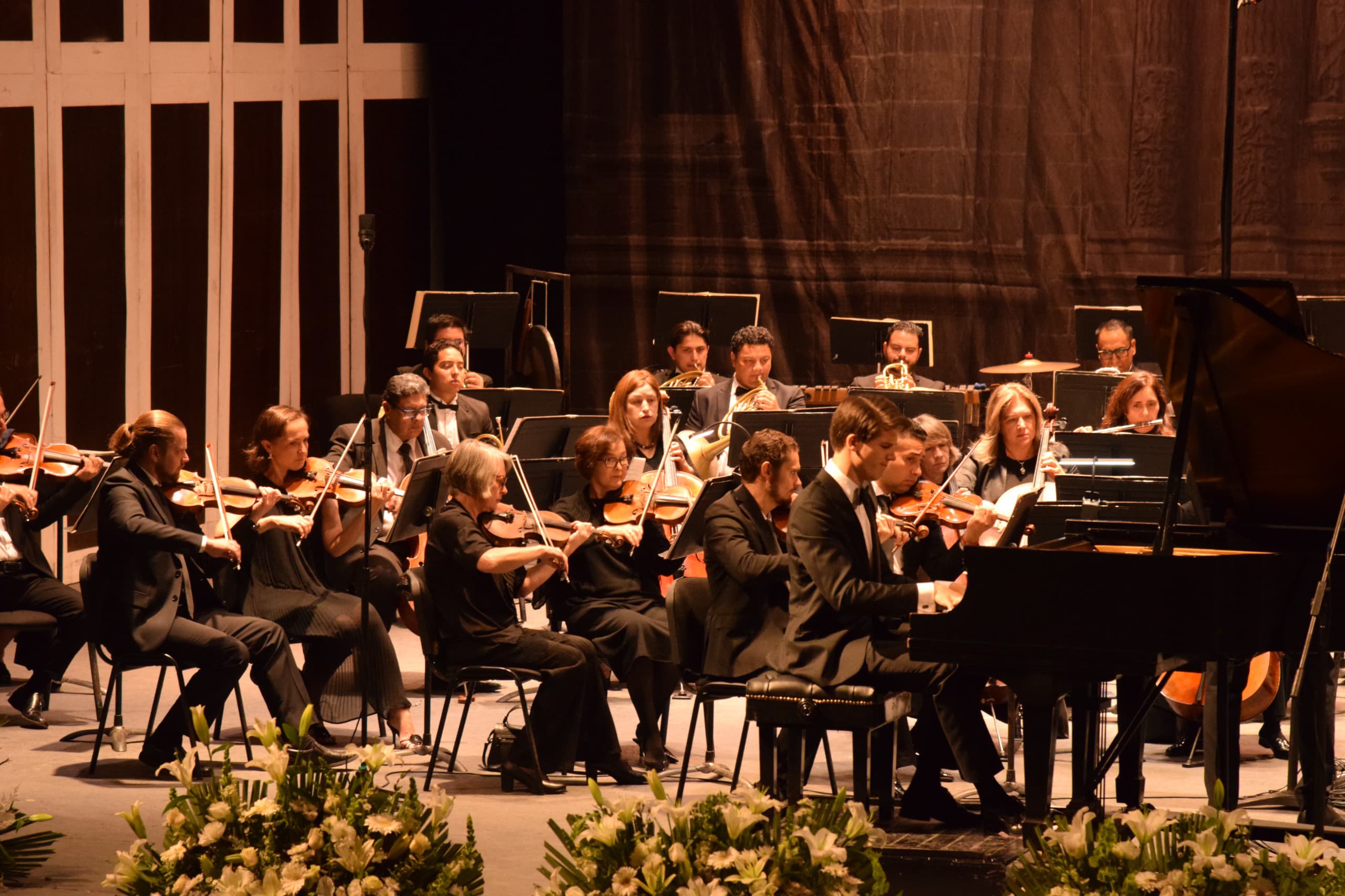Después de unas palabras de reconocimiento para recordar a las y los músicos que pertenecieron a la Orquesta, los asistentes disfrutaron de la Sinfonía no.1 en fa menor de Dmitri Shostakovich y del concierto para piano y orquesta no. 2 en Do menor de Sergei Rachmaninov, este último con la participación del pianista Vladimir Petrov. Ambas interpretaciones fueron dirigidas por el director huésped, Eduardo García Barrios.