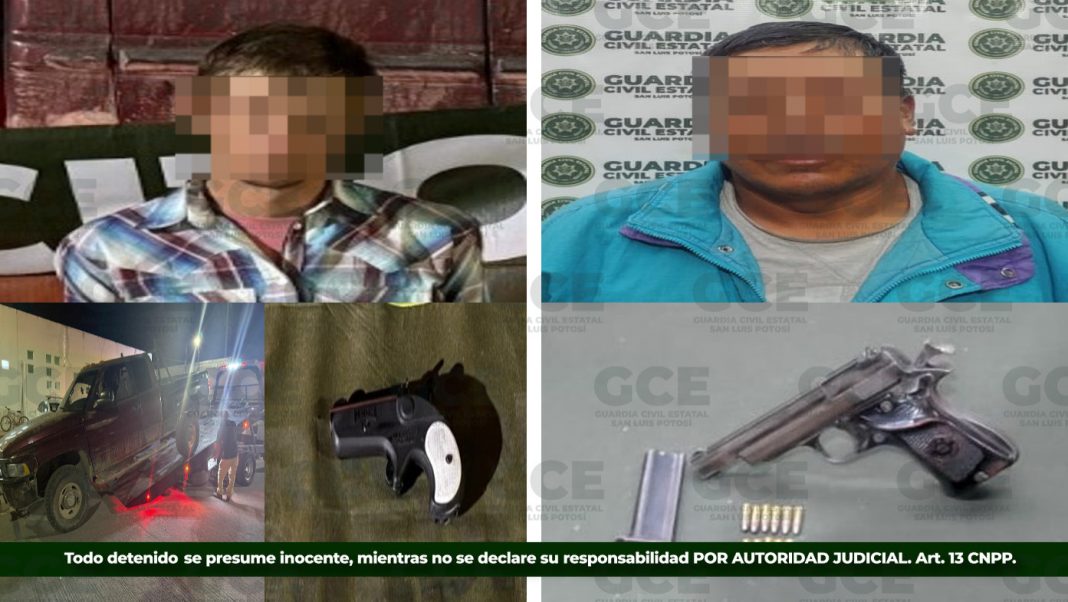 Derivado de los trabajos de inteligencia de la Guardia Civil Estatal (GCE) en coordinación con personal de la Defensa, dos personas fueron detenidas, en diferentes acciones, por el presunto delito de portación de armas de fuego: el primer detenido se ubicó en el municipio de Villa de Ramos, se trata de Filemón “N” de 49 años de edad, a quien se le aseguró un arma de fuego con un cargador abastecido con 11 cartuchos útiles.