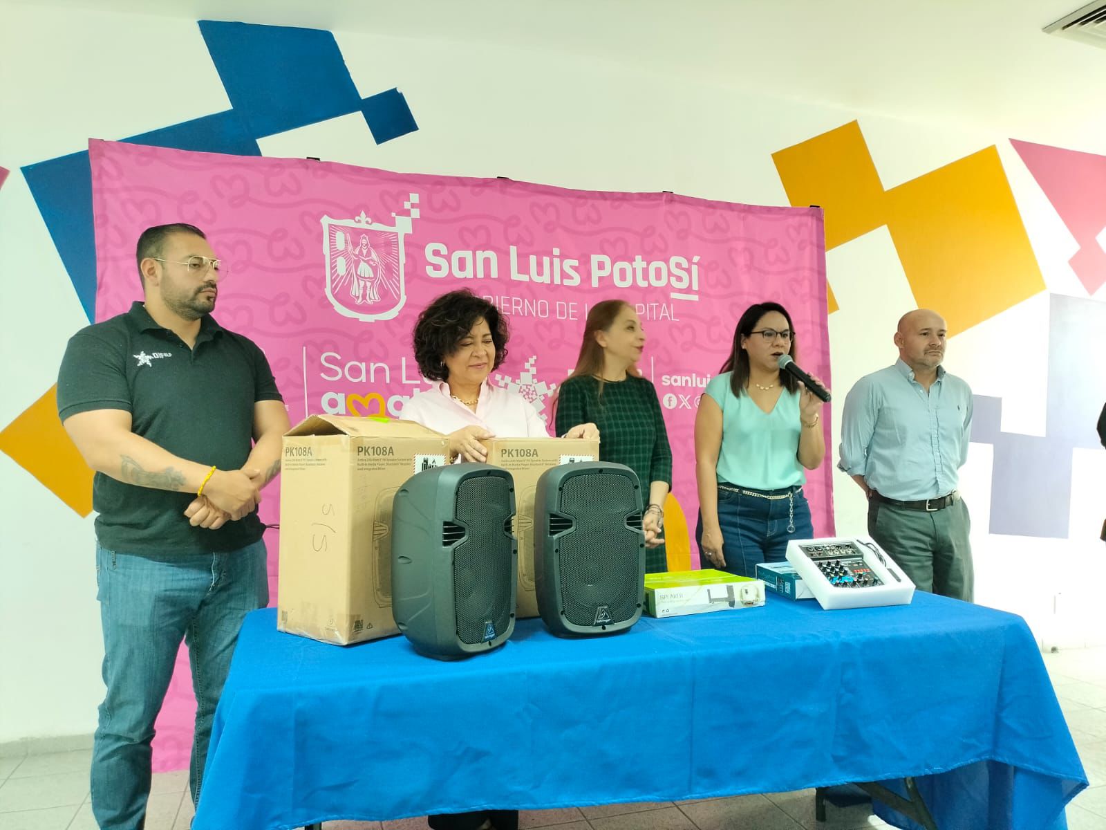 SLP.- La Presidenta de la Fundación Saya, Yamel Campos, entregó equipo de sonido profesional, destinado a fortalecer las terapias que se brindan en la cámara multisensorial de la Unidad Básica de Rehabilitación Maravillas, del Sistema Municipal DIF.