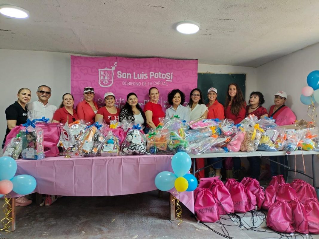 SLP.- Con la finalidad de llevar alegría y fomentar valores como la solidaridad y la generosidad, el DIF Municipal de San Luis Potosí realizó la entrega de más de 250 juguetes a niñas y niños de la comunidad de Terrero Sur, en la delegación de La Pila.