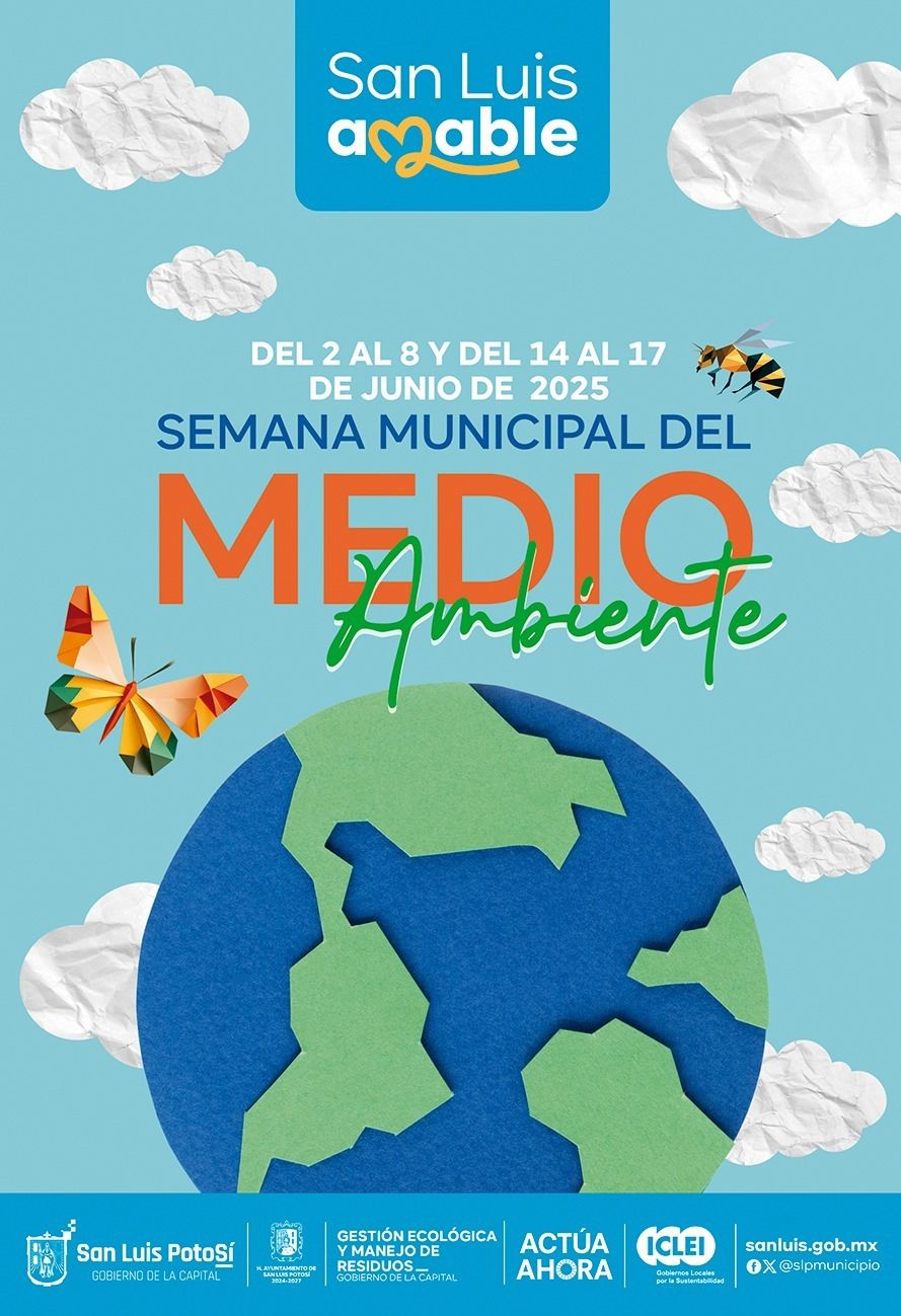 El Gobierno de la Capital de San Luis Potosí dio a conocer que se realizará la Semana Municipal del Medio Ambiente del lunes 2 al domingo 8 de junio, y también habrá actividades del 13 al 17 del mismo mes, por lo que se hace una atenta invitación a diversos sectores para que se sumen a este programa a favor de la ecología.