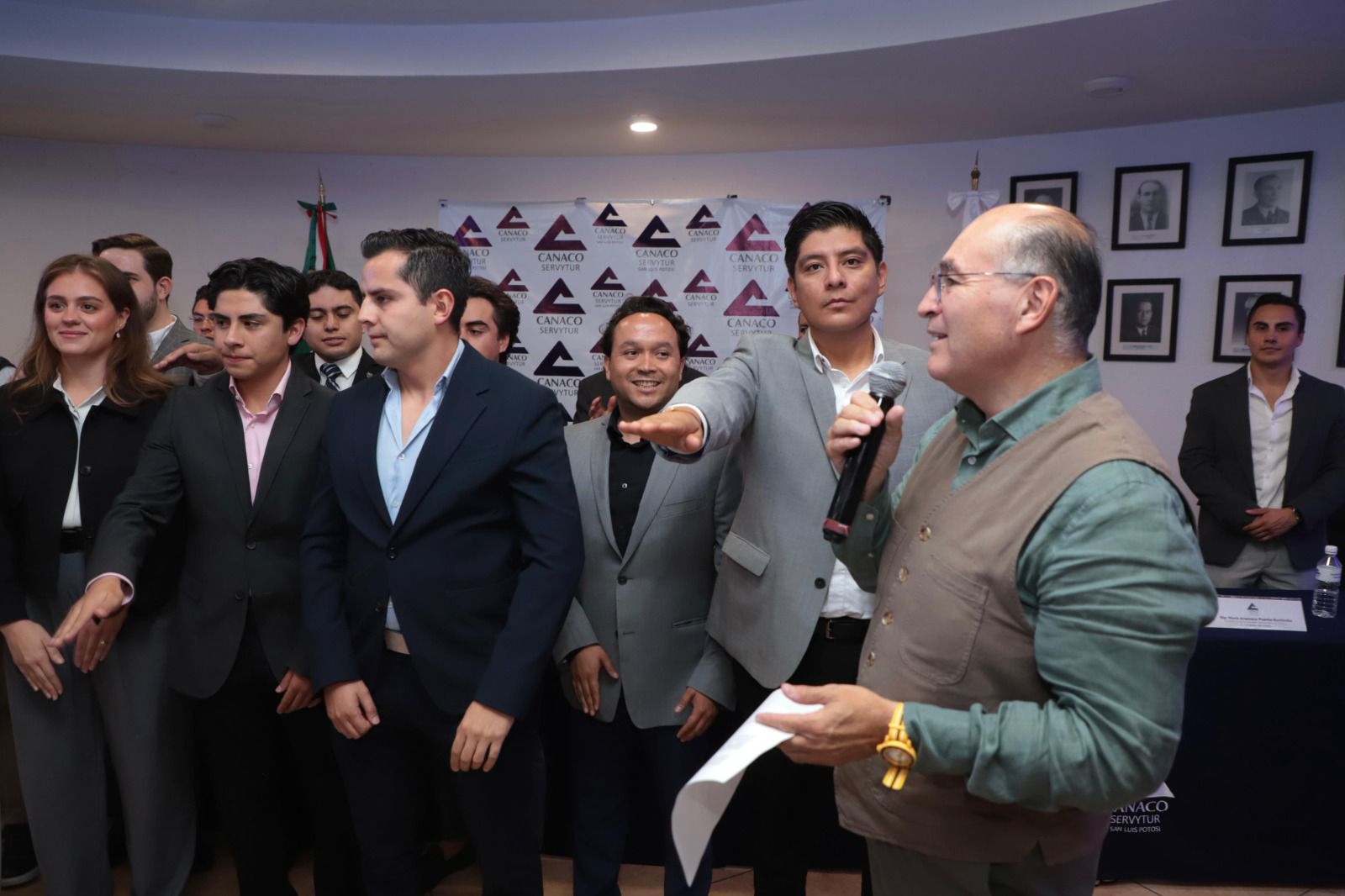 Enrique Galindo invitó a Jóvenes CANACO a participar activamente en los distintos consejos ciudadanos que impulsa el Gobierno de la Capital, como el Consejo de Desarrollo Económico, Consejo de Desarrollo Urbano, Consejo de Seguridad Pública, Consejo del Centro Histórico y el Consejo de Juventud, fortaleciendo así la agenda joven de San Luis Capital. En la ceremonia estuvieron presentes el Presidente de CANACO SERVYTUR, Lic. Fernando Díaz de León Hernández, el Diputado Federal Juan Carlos Valladares Eichelmann, el Secretario de Desarrollo Económico del Estado, Jesús Salvador González Martínez, así como regidores del Ayuntamiento y autoridades municipales.