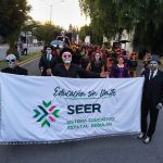Uno de los contingentes más destacados fue el del Sistema Educativo Estatal Regular (SEER), que reunió a más de mil 300 participantes entre estudiantes, docentes y personal administrativo. Con creatividad y esmero, presentaron representaciones alusivas a la muerte y la vida, con trajes coloridos, música y mensajes que exaltaban el valor de las tradiciones. El director general del SEER, Martín Rodríguez Ramírez, reconoció el esfuerzo conjunto de las comunidades educativas y destacó el impulso del gobernador Ricardo Gallardo Cardona para hacer posible un evento de esta magnitud.