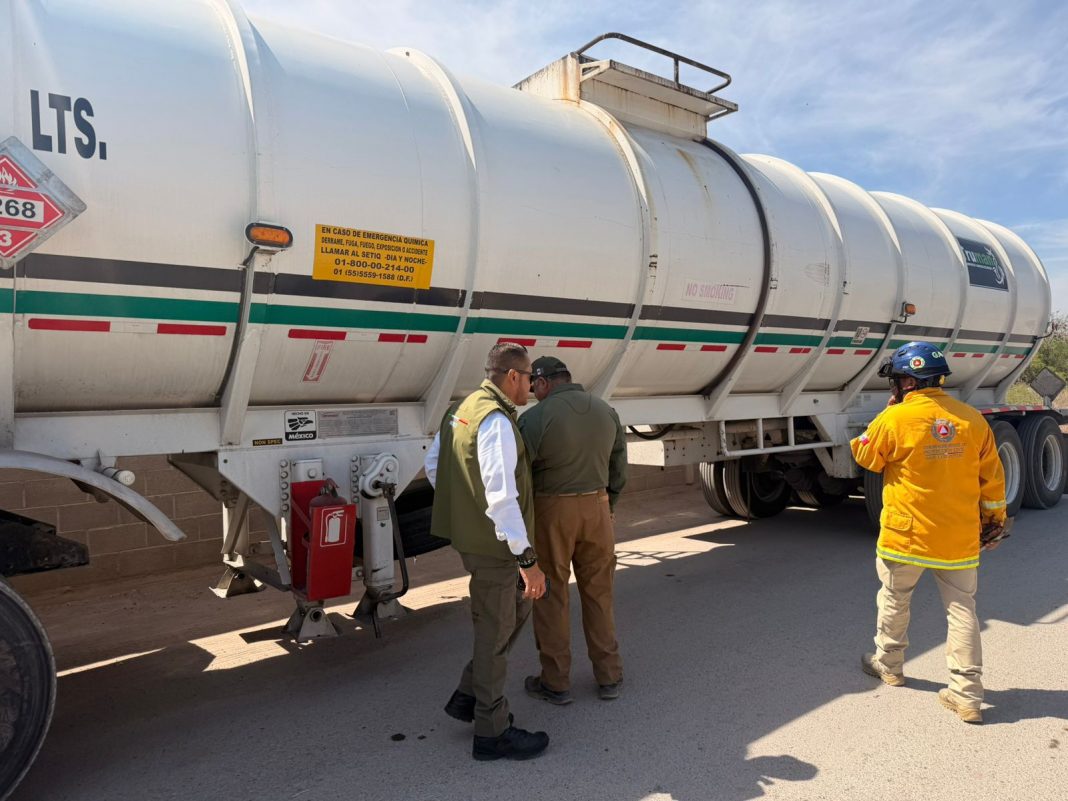 Soledad de Graciano Sánchez, S.L.P.- Derivado de los acuerdos de colaboración interinstitucional establecidos en la celebración de las mesas de construcción de paz, este miércoles a través de una acción operativa conjunta entre autoridades federales y estatales, se procedió a clausurar una pensión que resguardaba pipas cargadas de combustible sin los permisos correspondientes, lo cual representa un serio riesgo a la población y al medio ambiente.