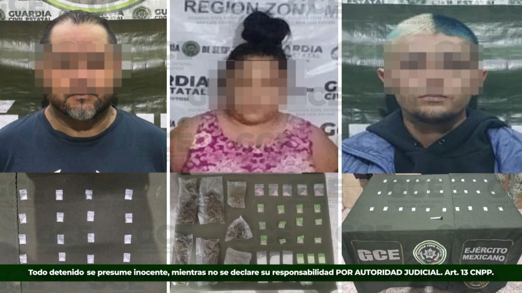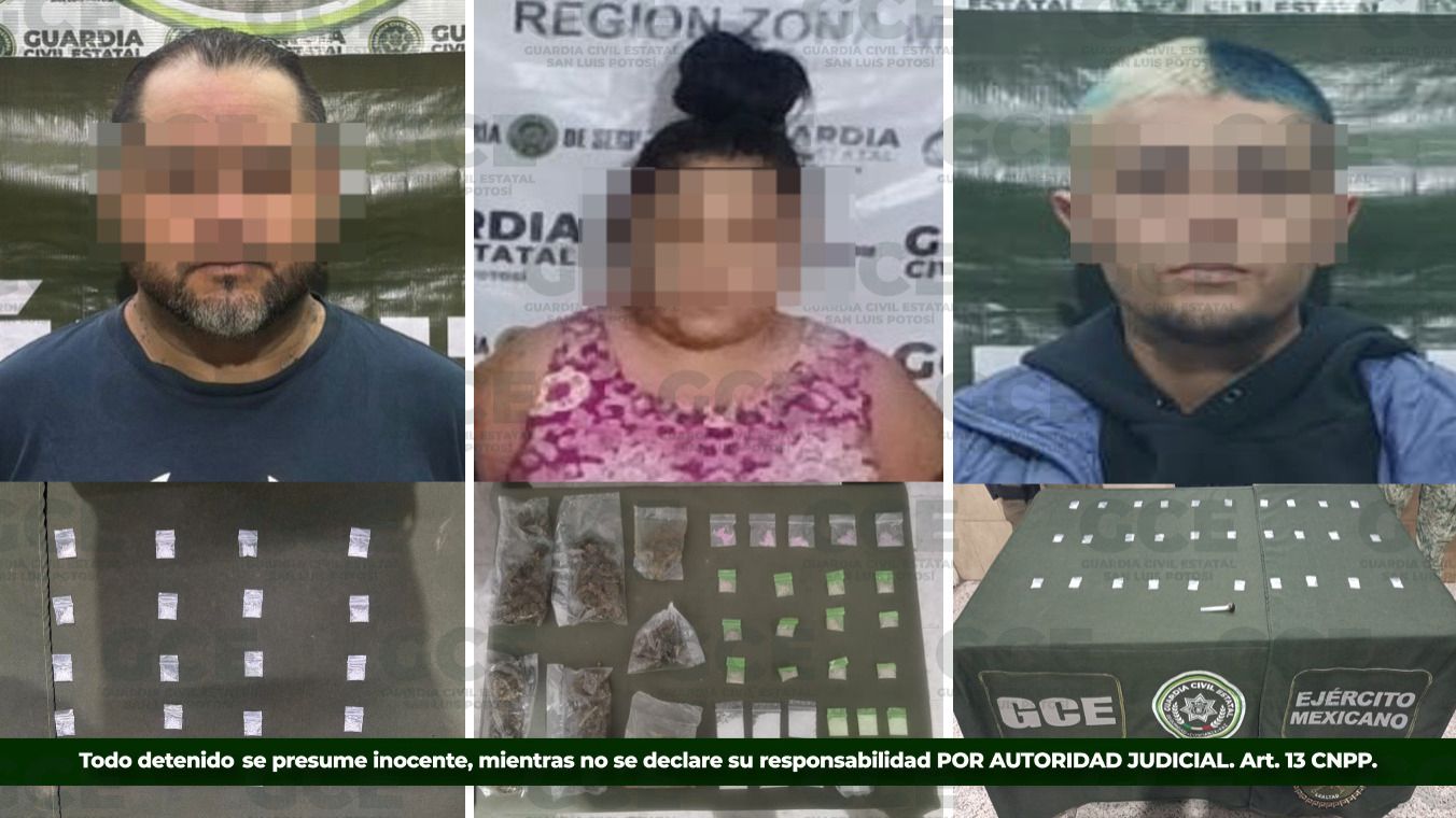 En las últimas 24 horas, efectivos de la Guardia Civil Estatal (GCE), detuvieron a cuatro presuntos vinculados en la posible venta de estupefacientes, asegurando dosis de sustancias nocivas para la salud de las familias potosinas.