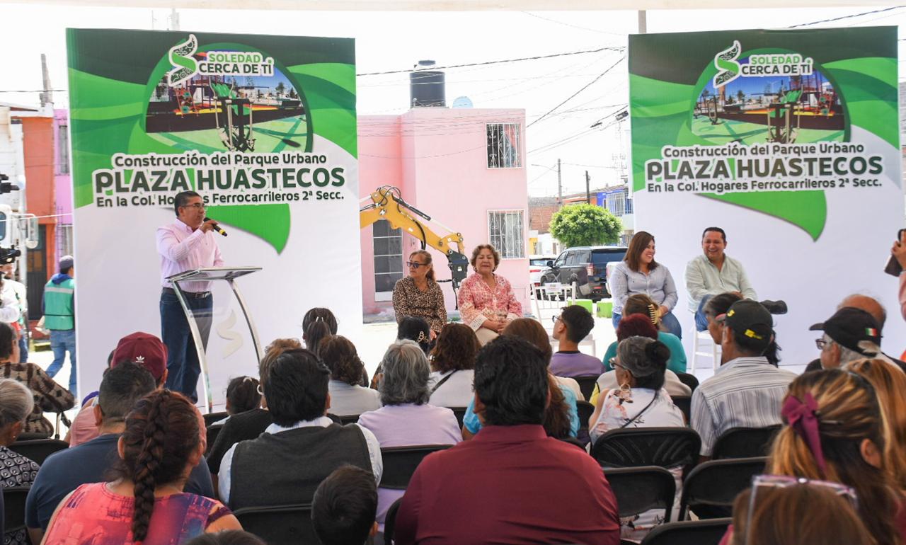 Con una inversión superior a los 4.3 millones de pesos, el Alcalde Juan Manuel Navarro Muñiz encabezó, este viernes, el arranque de la construcción del Parque Urbano Plaza Huastecos, en la colonia Hogares Ferrocarrileros Segunda Sección, como parte del ambicioso plan de transformación urbana que vive Soledad de Graciano Sánchez; acompañado de vecinos y vecinas emocionadas de la zona.