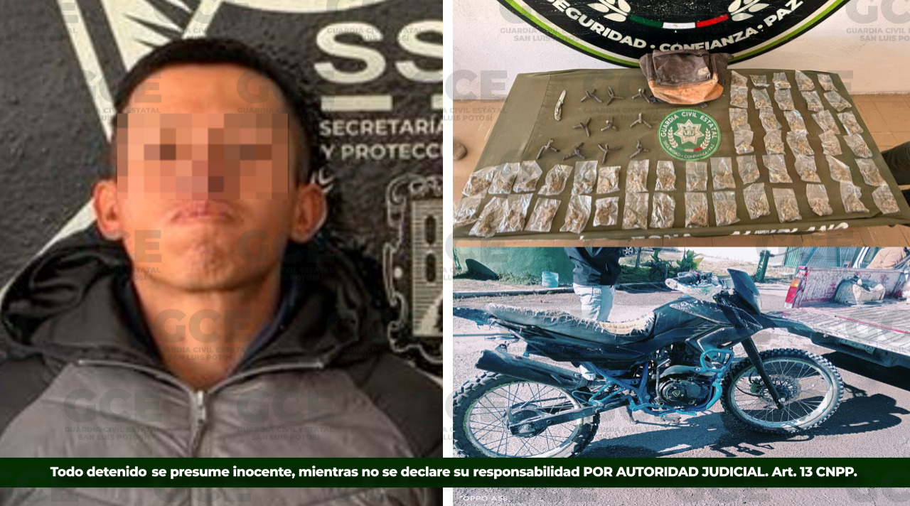 Como resultado de los operativos de vigilancia y prevención realizados por elementos de la Guardia Civil Estatal, en el municipio de Cedral se llevó a cabo la detención de un presunto narcomenudista, identificado como integrante de un grupo de delincuentes con zona de operación en la región.
