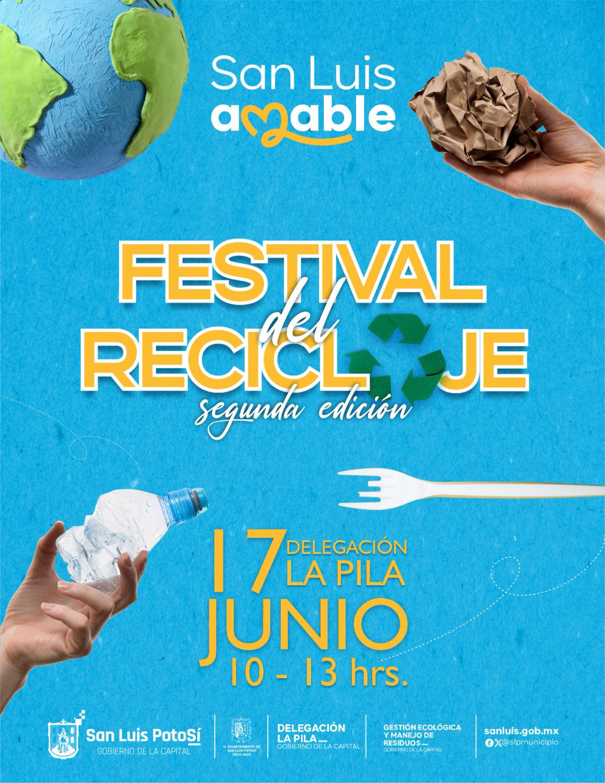 El Gobierno de la Capital, encabezado por el Alcalde Enrique Galindo Ceballos, invita a toda la ciudadanía a participar en la segunda edición del Festival del Reciclaje, que se llevará a cabo el próximo 17 de junio en la explanada de la Delegación La Pila, en un horario de 10:00 a.m. a 1:00 p.m.
