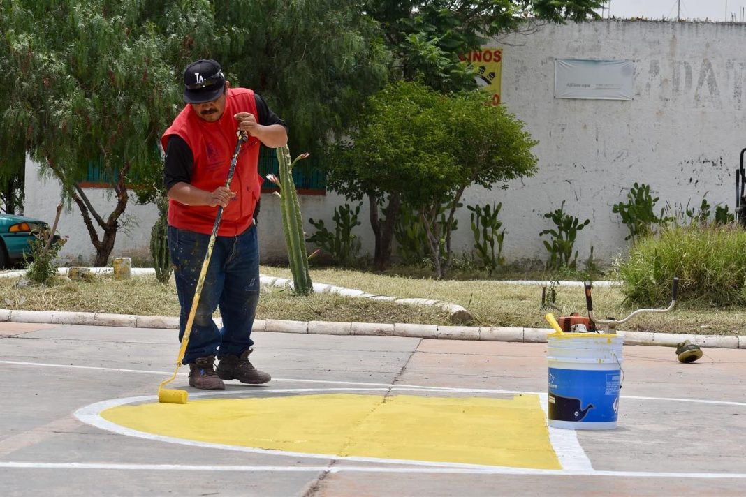 La Dirección de Servicios Municipales informó que actualmente se trabaja en la pintura de la cancha y el mantenimiento del área verde en la Privada Zinc, de la Colonia Morales, para que las familias de esta zona puedan disfrutar de espacios limpios, seguros y en buen estado.