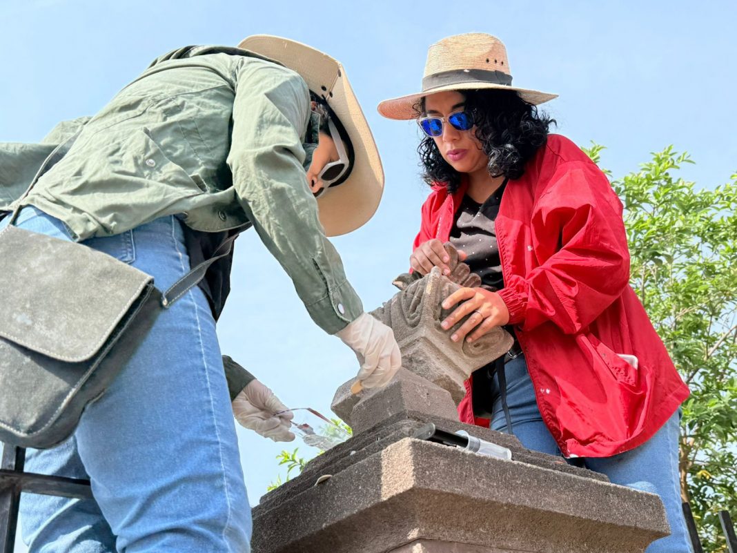 Las acciones consistieron en la estabilización de un capitel parcialmente desprendido, ubicado en la esquina de Independencia y Hermenegildo Galeana, así como en la recolocación de un remate ornamental con diseño fitomorfo, en la calle peatonal de Avenida Universidad. En este último caso, además de fijarse nuevamente la pieza, se realizó la reintegración de volumen en una sección, con el fin de conservar su forma y presencia original.