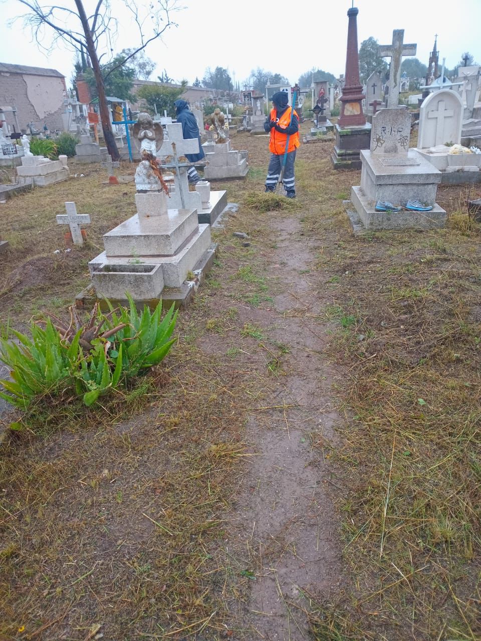 Con el fin de mantener en buen estado las zonas peatonales y dar mayor seguridad a los visitantes, el Gobierno Municipal trabaja en la limpieza y retiro de maleza del cementerio El Saucito.