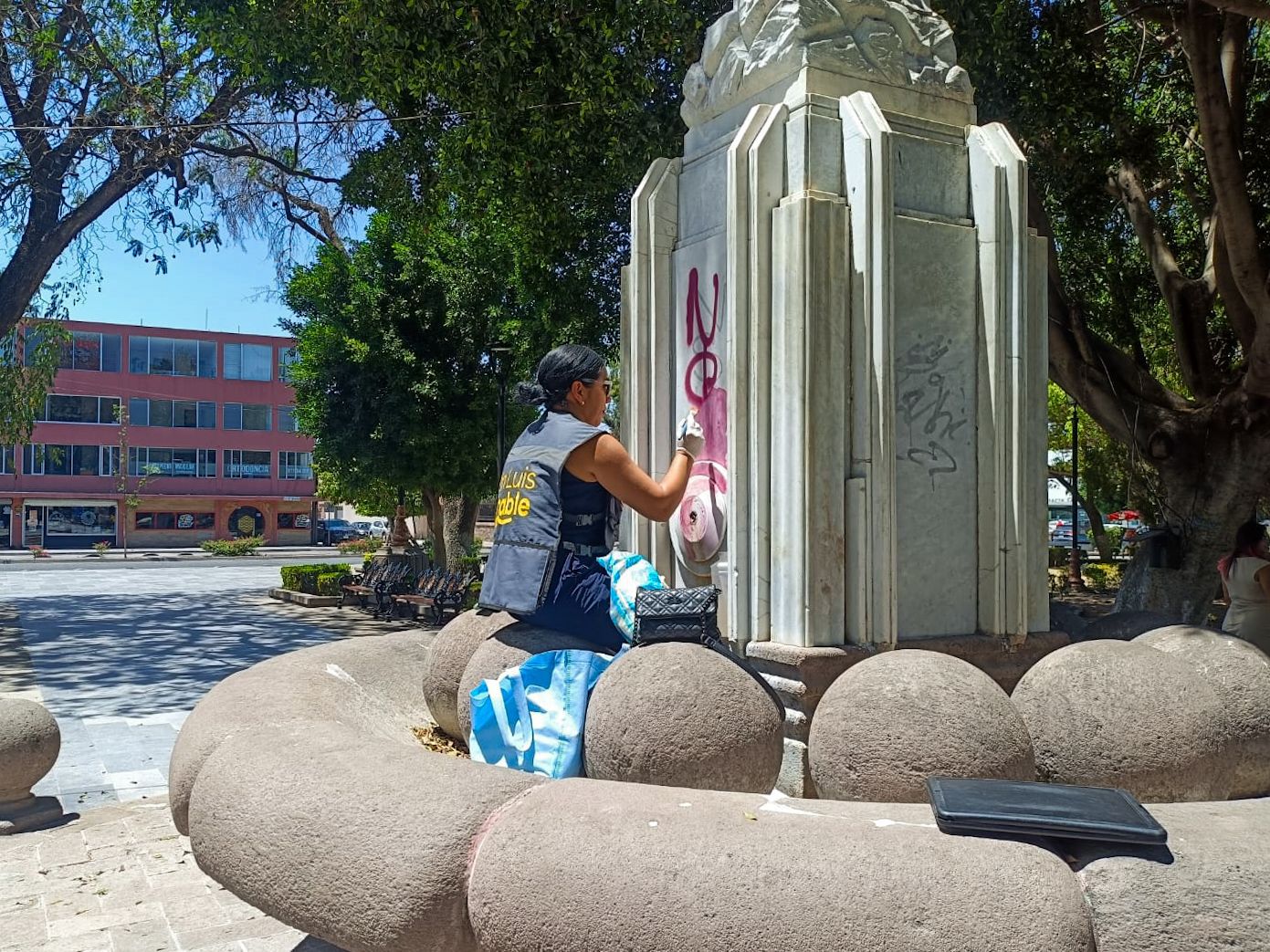 En atención a las instrucciones del Alcalde Enrique Galindo Ceballos de mantener en buen estado los espacios públicos y preservar el legado cultural de la ciudad, la Unidad de Gestión del Centro Histórico (UGCH), retiró las pintas que tenía el Monumento a la Madre, ubicado en el Jardín de Tequisquiapan.