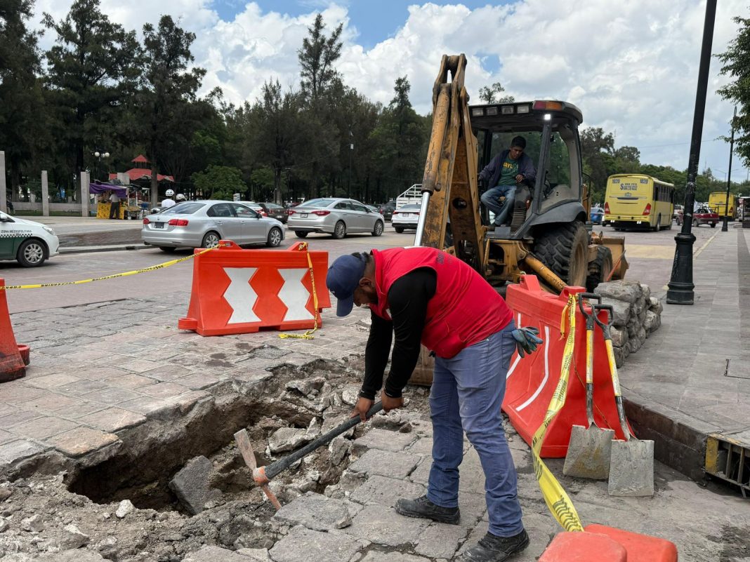 En atención a una afectación registrada en la intersección de Avenida Universidad y Calle de la Esperanza, en la Alameda Juan Sarabia del Centro Histórico de San Luis Potosí, el Gobierno de la Capital puso en marcha acciones inmediatas para su atención.