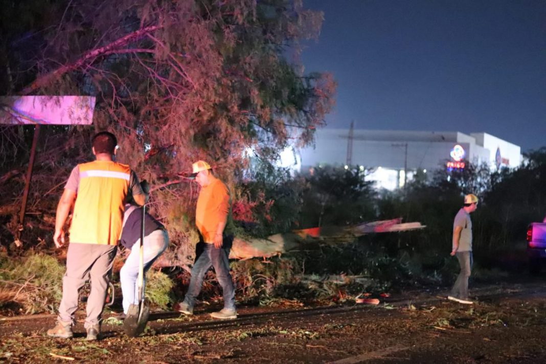 Una de las principales acciones consistió en el retiro de árboles caídos que obstruían la circulación sobre el Eje 140, a la altura de la avenida CFE, así como en el acceso principal a la comunidad de El Jaralito, donde también se brindó apoyo para liberar un camión de pasajeros que quedó atascado debido a las condiciones del terreno.