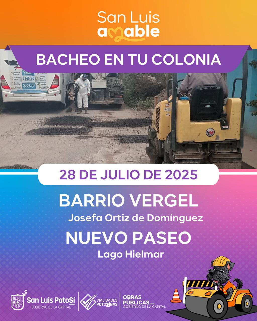 En la continuación del programa emergente de bacheo, que tiene como finalidad atenuar los daños causados por las recientes lluvias, la Dirección de Obras Públicas del Ayuntamiento de la Capital programó para este lunes una serie de intervenciones en diversas calles y avenidas de la ciudad.