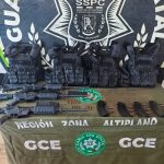 Al repelerse la agresión, los presuntos dejaron la camioneta MG color blanco con reporte de robo, en cuyo interior se encontraron tres armas largas, cuatro chalecos tácticos y cinco cargadores metálicos.