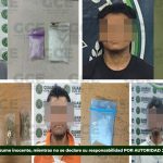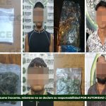 En la colonia Las Julias, elementos de la GCE detuvieron a Marco “N” de 47 años, luego de asegurarle dos dosis de “cristal”; en la zona centro, José “N” de 22 años, fue asegurado con una bolsa con marihuana; Ramiro “N” de 25 años, fue detenido con tres dosis de “cristal”, en la zona Industrial; Oscar “N” de 29 años, fue asegurado en la colonia Tercera Chica, con una dosis de “cristal”; sobre la colonia Nueva Progreso, Gerardo “N” de 27 años, fue detenido con una dosis de marihuana; Sebastián “N” de 20 años, quedó detenido con una bolsa con marihuana, en la colonia Julián Carrillo; en este mismo sector, Cristian “N” de 29 años, fue asegurado con una dosis de metanfetamina.