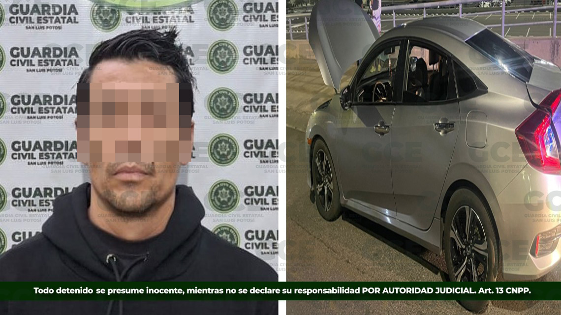 Los agentes estatales detuvieron a Ónesimo “N” de 43 años, luego de que manejara por calles de la colonia Lomas del Tecnológico, un Honda City modelo 2021 color plata, robado en el estado de Jalisco.
