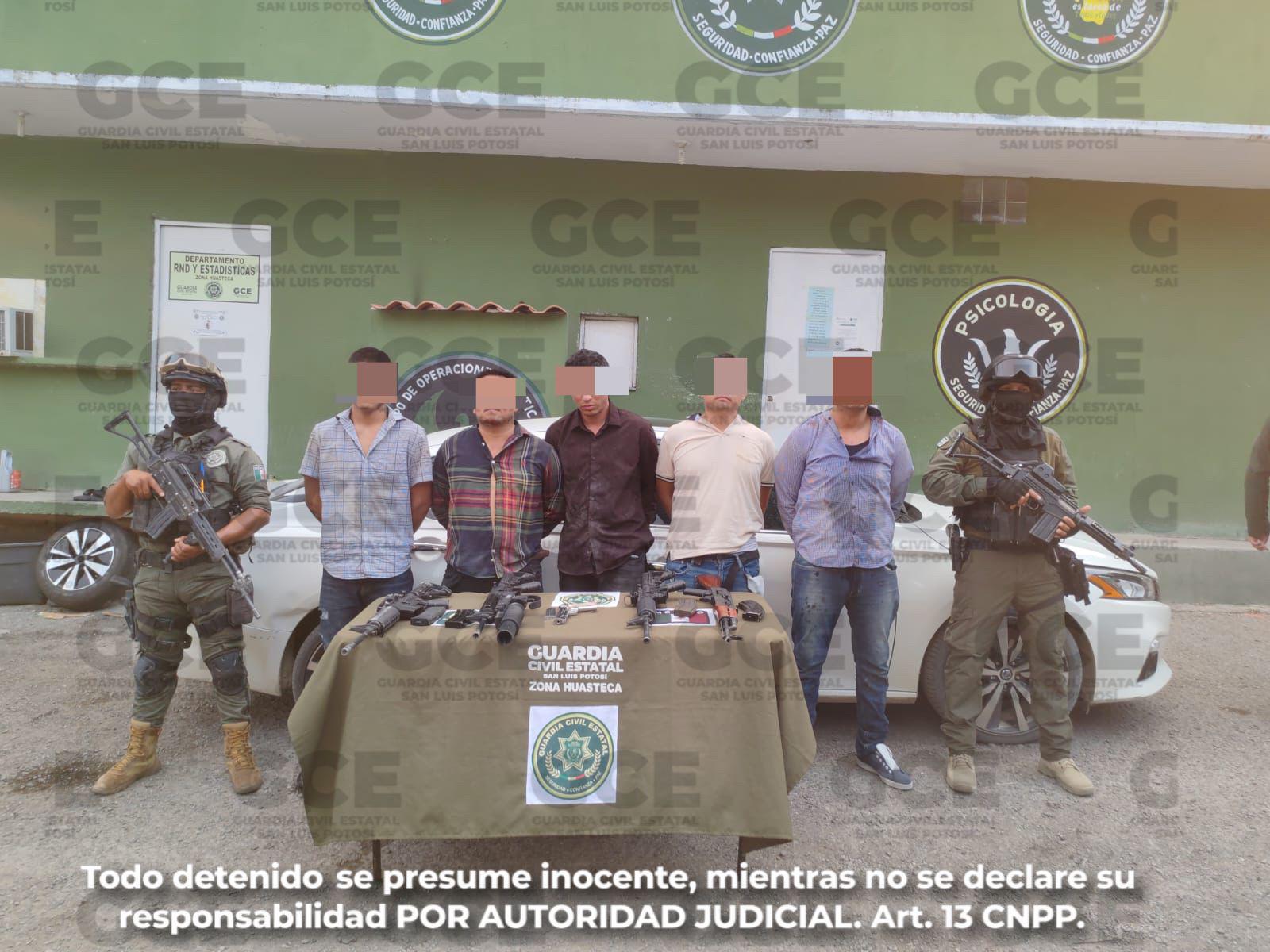 Ciudad Valles, S.L.P.- Como parte de las acciones coordinadas entre la Guardia Civil Estatal y la Secretaría de la Defensa Nacional, se llevó a cabo un operativo en la región Huasteca que derivó en la detención de siete personas y el aseguramiento de armamento, cargadores, cartuchos útiles y un vehículo.