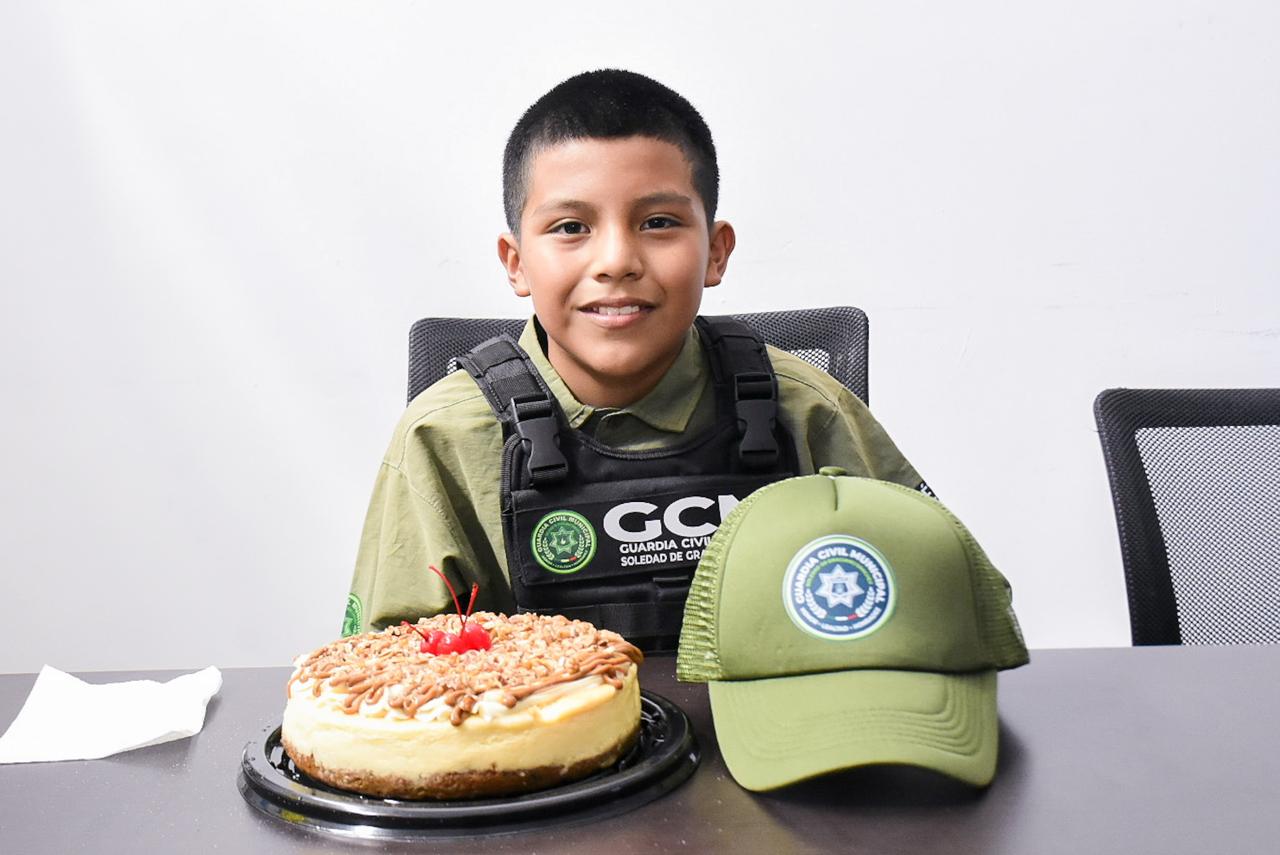 En una muestra de compromiso social y de resaltar el lado humano de la corporación, la Guardia Civil Municipal de Soledad de Graciano Sánchez recibió a Johan Yeudiel Delgado Velasco de 11 años, quien en su cumpleaños el Director General de la dependencia, comisario Víctor Aristarco Serna Piña, en coordinación con los mandos municipales cumplieron su sueño de ser policía de la Guardia Civil soledense, y en compañía de su familia se presentó como comisario honorario en las instalaciones de la comandancia central.