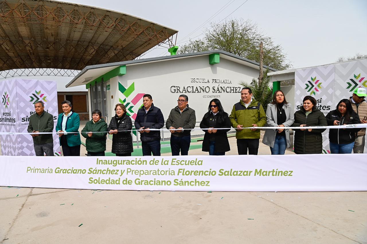 El Presidente municipal, Juan Manuel Navarro Muñiz celebró y reconoció el impulso del Gobernador del Estado, Ricardo Gallardo Cardona, en la garantía de educación de calidad y de escuelas modernas, al entregar la reconstrucción de la primaria “Graciano Sánchez” y la preparatoria “Florencio Salazar Martínez”, en la comunidad rural de Enrique Estrada que hoy beneficia a caso 300 estudiantes de Soledad de Graciano Sánchez y les brinda dignidad educativa.