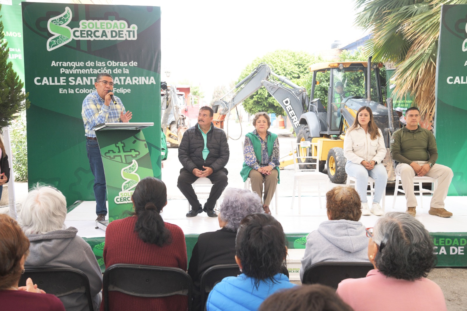 Juan Manuel Navarro Muñiz, Alcalde de Soledad de Graciano Sánchez, dio el banderazo de arranque al proyecto de pavimentación total de calles de la colonia San Felipe, iniciando con la intervención de la calle Santa Catarina, del tramo de Avenida Soledad a calle San Luis, que beneficiará directamente a más de cuatro mil habitantes con la rehabilitación de dos mil 250 metros cuadrados y la renovación completa de la red de agua potable, drenaje sanitario, banquetas, guarniciones, iluminación LED y señalética vial.