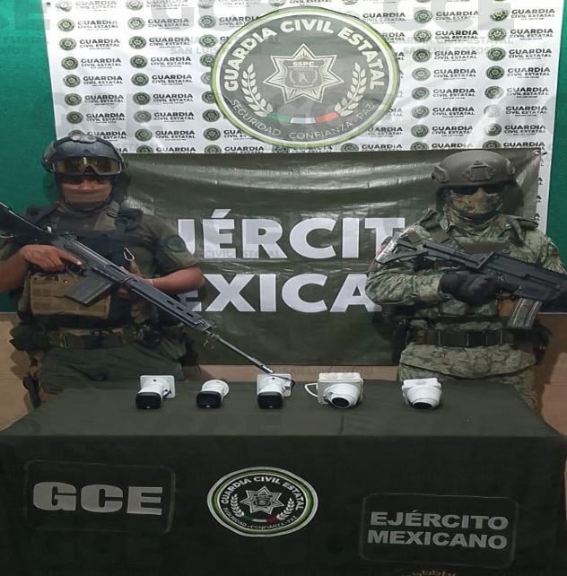 Agentes de la Guardia Civil Estatal desplegaron un operativo con autoridades del Ejército mexicano, tras los recorridos sobre el fraccionamiento Villas de San Lorenzo, al oriente de la zona metropolitana, se detectaron cinco cámaras, presuntamente instaladas por personas para la comisión de ilícitos en la colonia mencionada.
