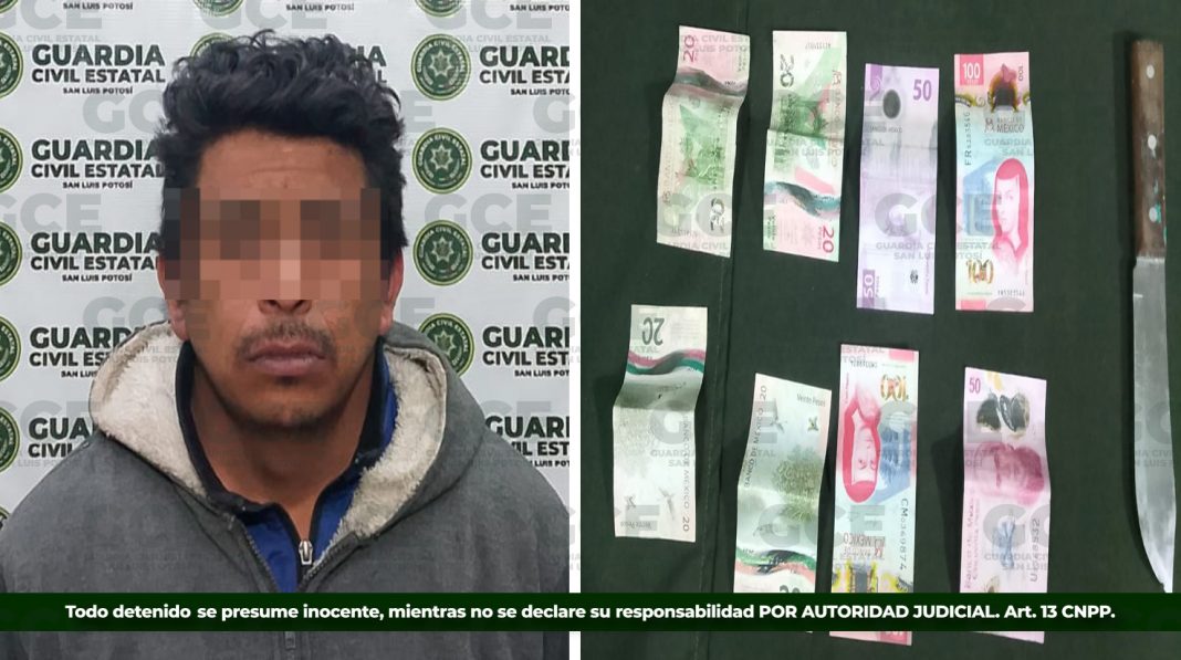 El presunto, que contaba con una orden de aprehensión vigente por el delito de robo a comercio con violencia, fue detenido en la colonia La Campana, en la capital potosina, luego de que las fuerzas del orden acudieran al reporte de un robo a una tienda de conveniencia.