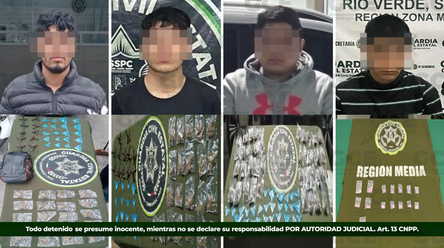 El primer hecho tuvo lugar en el municipio de Ciudad Valles, en la colonia Juárez, ahí fue detenido Diego “N” de 18 años, luego de asegurarle 20 dosis de “cristal”, 20 de marihuana, 20 objetos “poncha llantas” y una motocicleta en la que viajaba. En este mismo municipio fue detenido Nahir “N“ de 20 años, tras detectarlo sobre el fraccionamiento Tecnológico con 16 dosis de metanfetaminas, 22 bolsas con marihuana y 12 “poncha llantas”.