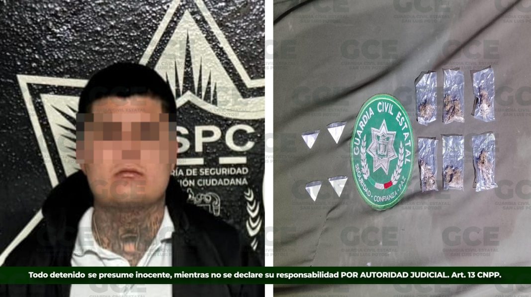 En una segunda acción, en el municipio de Matehuala, elementos estatales detuvieron a Emilio “N” de 20 años, considerado objetivo prioritario, con presencia operativa en las regiones Huasteca y Altiplano. El detenido cuenta con antecedentes registrales y al momento de su detención, se le aseguraron diversas dosis de drogas.