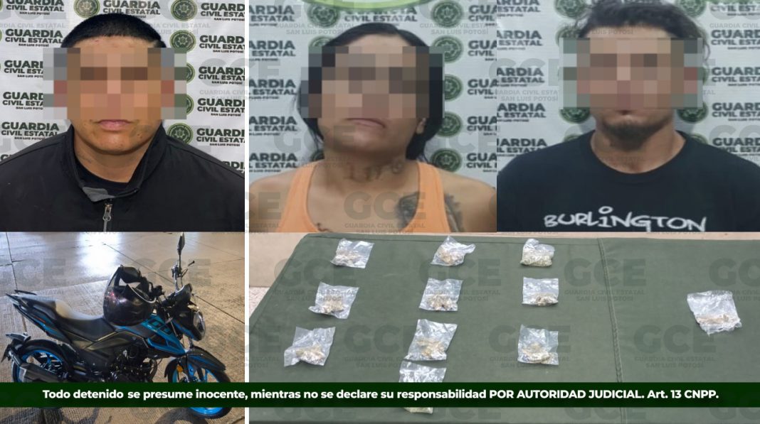 Por otra parte, en la capital potosina, en la colonia Morales, se detuvo a Juan “N”, de 32 años, y Marcela “N”, de 30 años, presuntamente relacionados con el narcomenudeo, a quienes se les aseguraron dosis de sustancias dañinas para la salud.