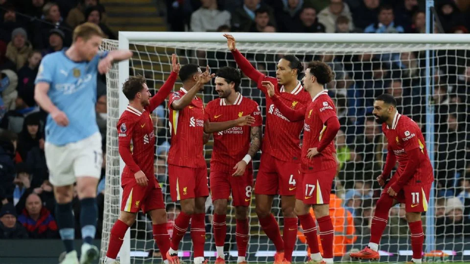 El primer gol pertenece a la innovación y a la estrategia a balón parado: el servicio raso al primer palo de Alexis Mac Allister, el toque de primeras en diagonal el centro del área de Luis Díaz y el remate tan cómodo de Salah a los 14 minutos en el estadio Etihad para enfilar el vigésimo título de Liga de su historia.