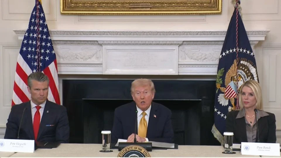 En una conferencia con su equipo de Seguridad, el mandatario estadounidense habló sobre las acciones en su gobierno en contra del narcotráfico y mencionó brevemente a México y a la presidenta Claudia Sheinbaum.