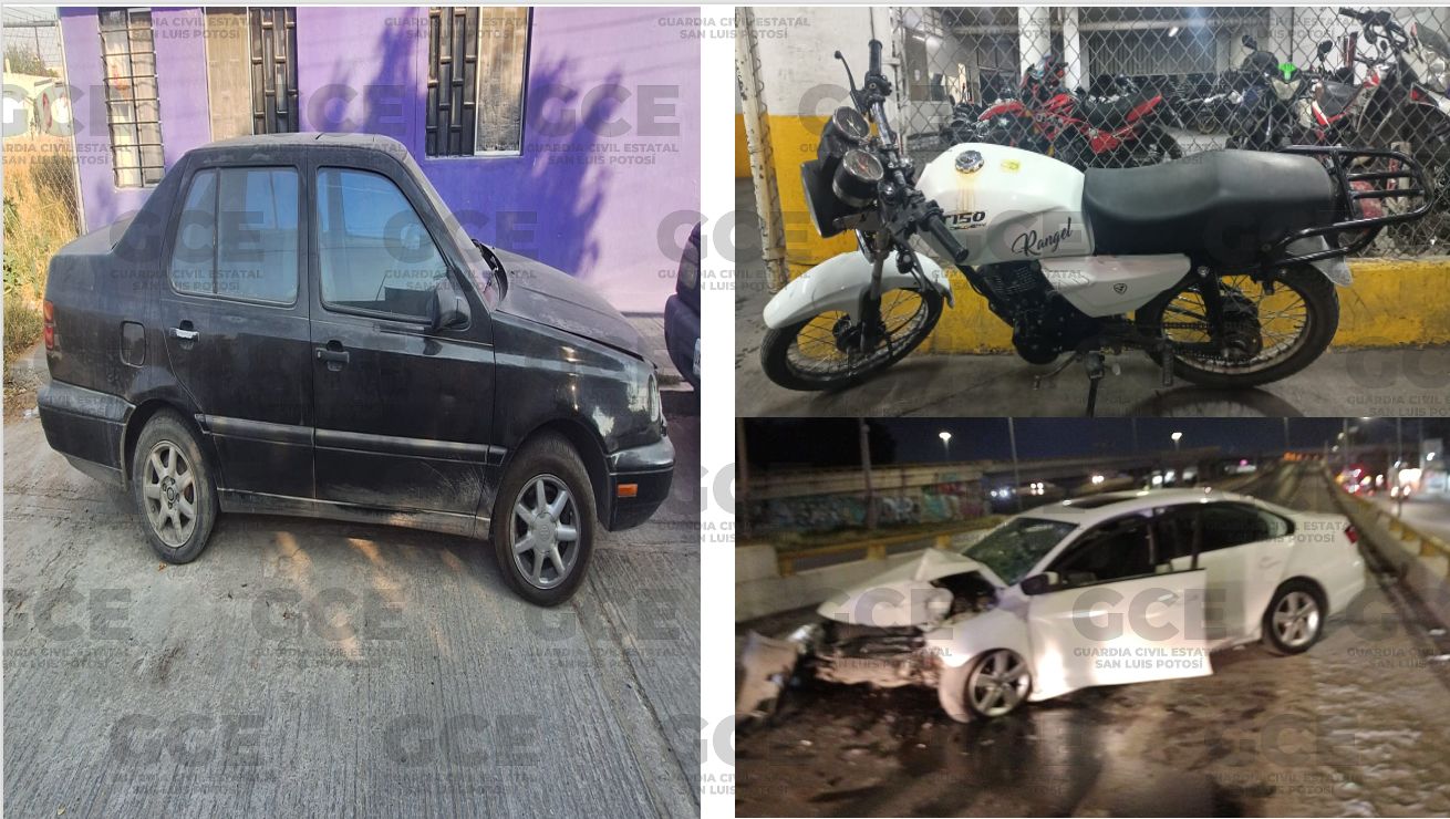 Además, recuperaron un automotor Volkswagen línea Jetta, color negro, modelo 1997, que tenía reporte de robo en la capital potosina. Se ubicó en el municipio de Soledad de Graciano Sánchez. Por último, la División Caminos de la GCE ubicó un automóvil Volkswagen línea Jetta, color blanco, que tenía reporte de robo en la colonia El Aguaje, se recuperó en la colonia Prados Glorieta.