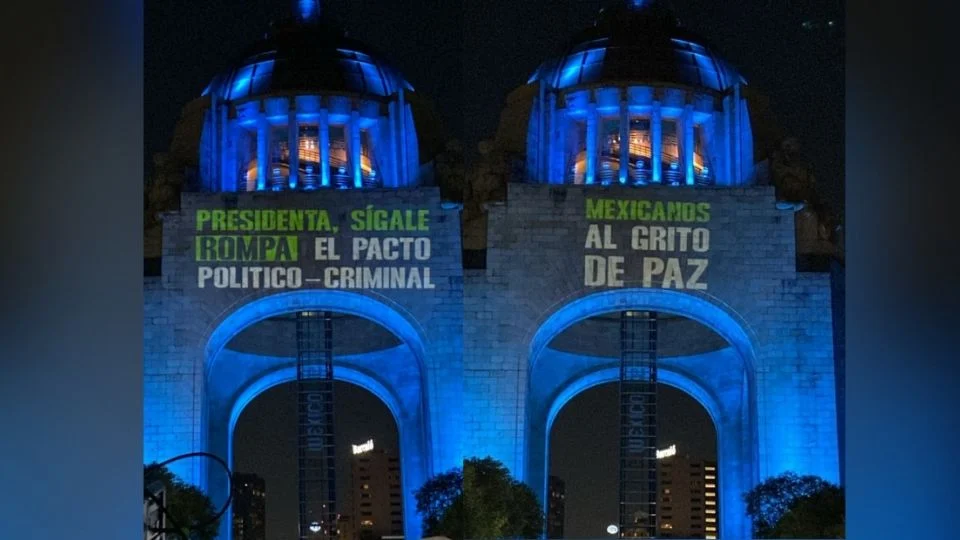 “Presidenta, sígale, rompa el pacto político-criminal”, fue el mensaje que se proyectó la noche de este miércoles en el Monumento a la Revolución por parte de un colectivo hacia Claudia Sheinbaum.