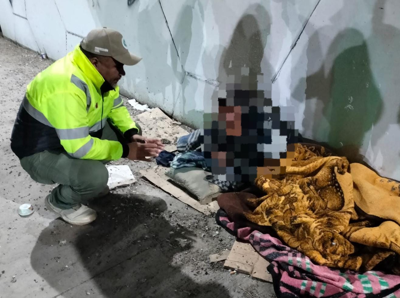 En uno de estos recorridos, sobre la avenida San Pedro, el Equipo de Rescate y Atención Médica localizó a un hombre en situación de calle; tras una valoración médica, se constató que estaba consciente, cooperador y sin lesiones que representaran riesgo para su vida, como parte del apoyo inmediato, se le brindaron recomendaciones de cuidado y se le entregaron cobijas para mitigar el frío, sin requerir traslado hospitalario ni a un albergue.