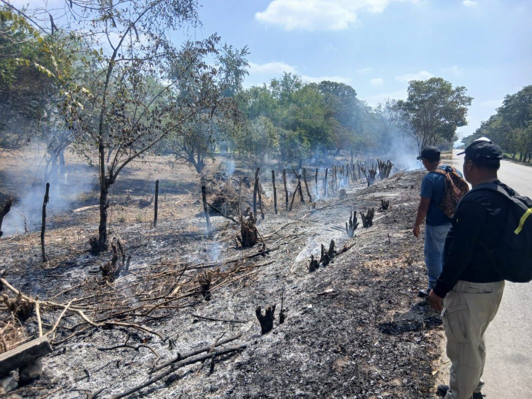 La fuerza operativa de Protección Civil del Estado, combate la reactivación de un incendio en el Municipio de Villa de Reyes, con el apoyo de autoridades municipales.