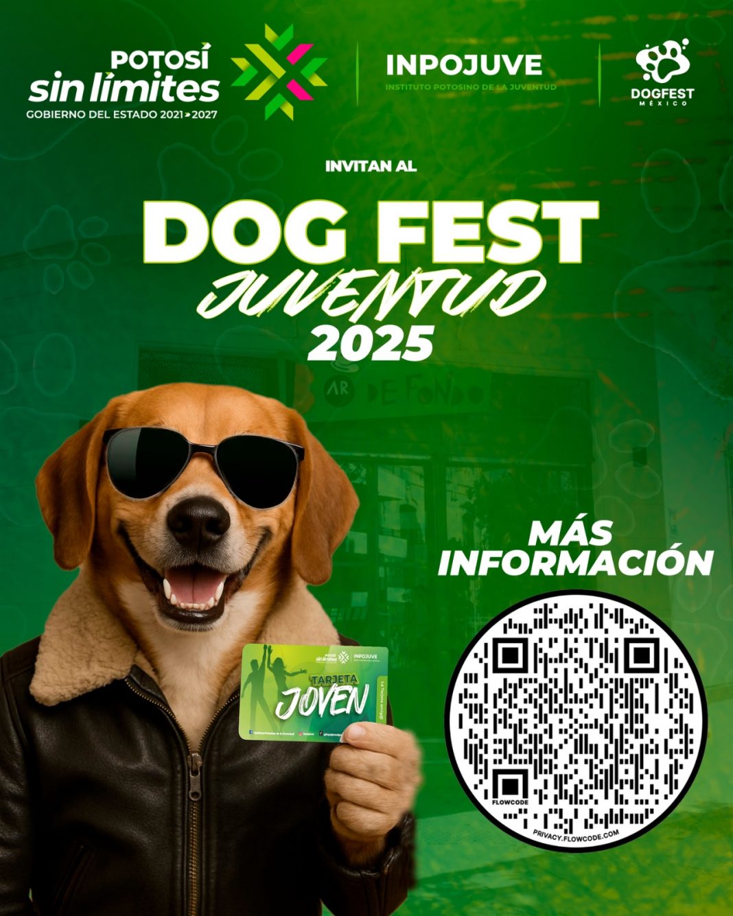 Este domingo 22 de junio de 9:00 a 19:00 horas, el Instituto Potosino de la Juventud será sede del Dog Fest Juventud 2025 un evento donde habrá adopciones, concursos, mercadito emprendedor, área gastronómica y muchas sorpresas más, en un ambiente pet friendly y familiar.