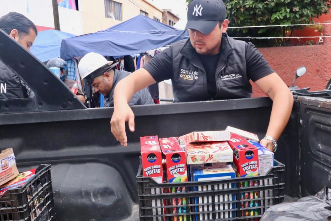 Durante el operativo se levantaron 12 infracciones de vialidad por parte de la Policía Vial de la SSPC, principalmente por vehículos estacionados en doble fila, en lugares prohibidos y obstruyendo la vía pública. Asimismo, se sancionó a 15 comerciantes que operaban con giros no autorizados, como venta de aparatos de descargas eléctricas, cuchillos y boxers. En coordinación con COEPRIS, se decomisaron 20 kilos de embutidos caducos y 10 kilos de abarrotes en mal estado, incluyendo cereales y leche en polvo. También se inspeccionaron puestos de venta de antojitos, lácteos, carnes y mariscos.